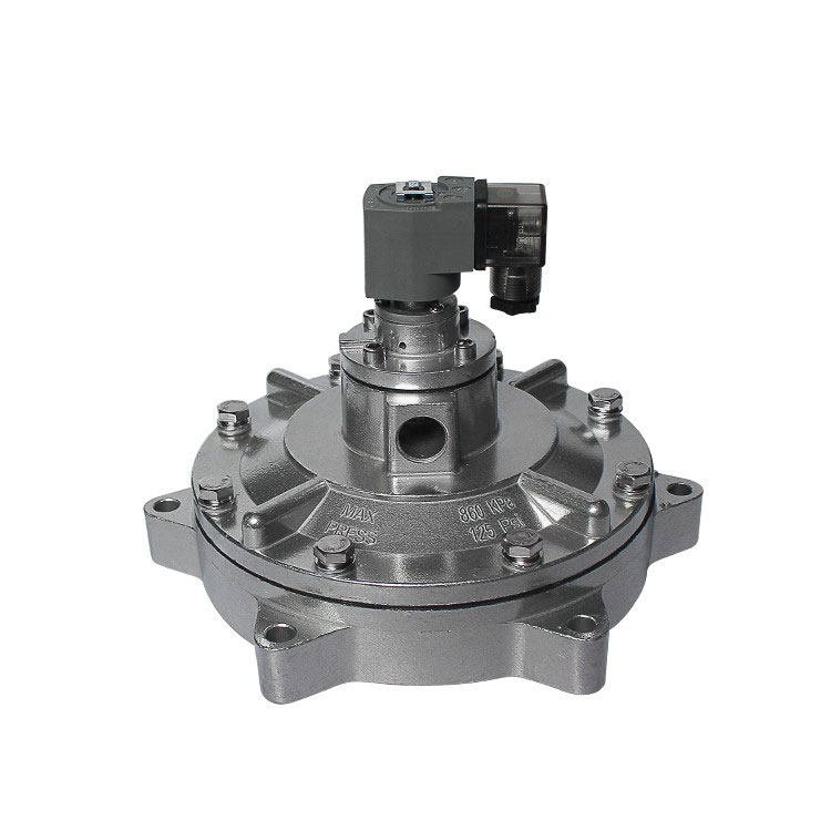 Caracteristica sa este că țevile de intrare și de evacuare a aerului ale supapei în unghi drept sunt la un unghi de 90°. Corpul supapei și capacul sunt turnate sub presiune folosind material din aliaj de aluminiu. După tratarea suprafeței, acestea prezintă o rezistență excelentă la coroziune. Diafragma și garnitura de etanșare sunt produse printr-un proces compozit vulcanizat. Materiile prime pentru capul pilot electromagnetic constau din materiale magnetice de înaltă eficiență și materiale de ecranare magnetică din oțel inoxidabil. Componentele critice precum arcurile și elementele de fixare sunt fabricate din oțel inoxidabil. Metoda de conectare: Țeava distribuitorului de aer (rezervorul de aer) și suflantul colectorului de praf sunt introduse în intrarea și, respectiv, ieșirea supapei, etanșate cu piulițe de compresie la ambele capete.